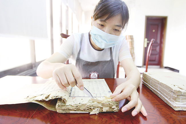 她们每天专注于“故纸堆”,摩挲着泛黄破损的书页,“把脉问诊”让其焕发新生。