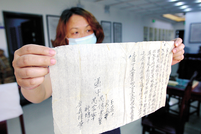 此时,祖文君正在修复一张发黄的文契,镊子、剪子、裁纸刀、起子、刷子、压条等工具摆满案头,并不时地交替使用。祖文君告诉记者,这张馆藏文契是光绪年间的,由于年代久远和虫蛀,已明显破损,亟需修复。