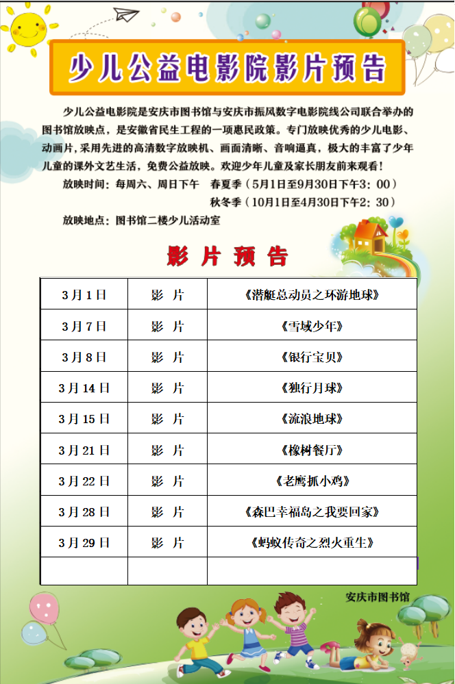2026年3月少儿公益电影院影片预告